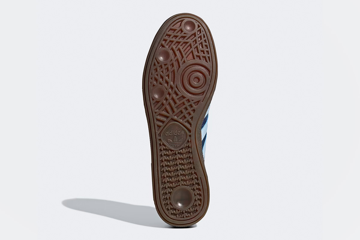 The adidas Handball Spezial Navy Gum takes its inspiration from a 1980s handball shoe. Dressed in a Navy, Sky Blue, White, and Gum color scheme, this sneaker features a nubuck suede upper. Other details include adidas branding on the tongue, the trademark 3-Stripes on the sides, the “Spezial” Trefoil logo on the lateral in gold foil, and a branded OrthoLite insole. This shoe has a round toe and a lace-up closure system with Navy Blue laces that match the overall theme. A gum rubber outsole completes the vintage look.