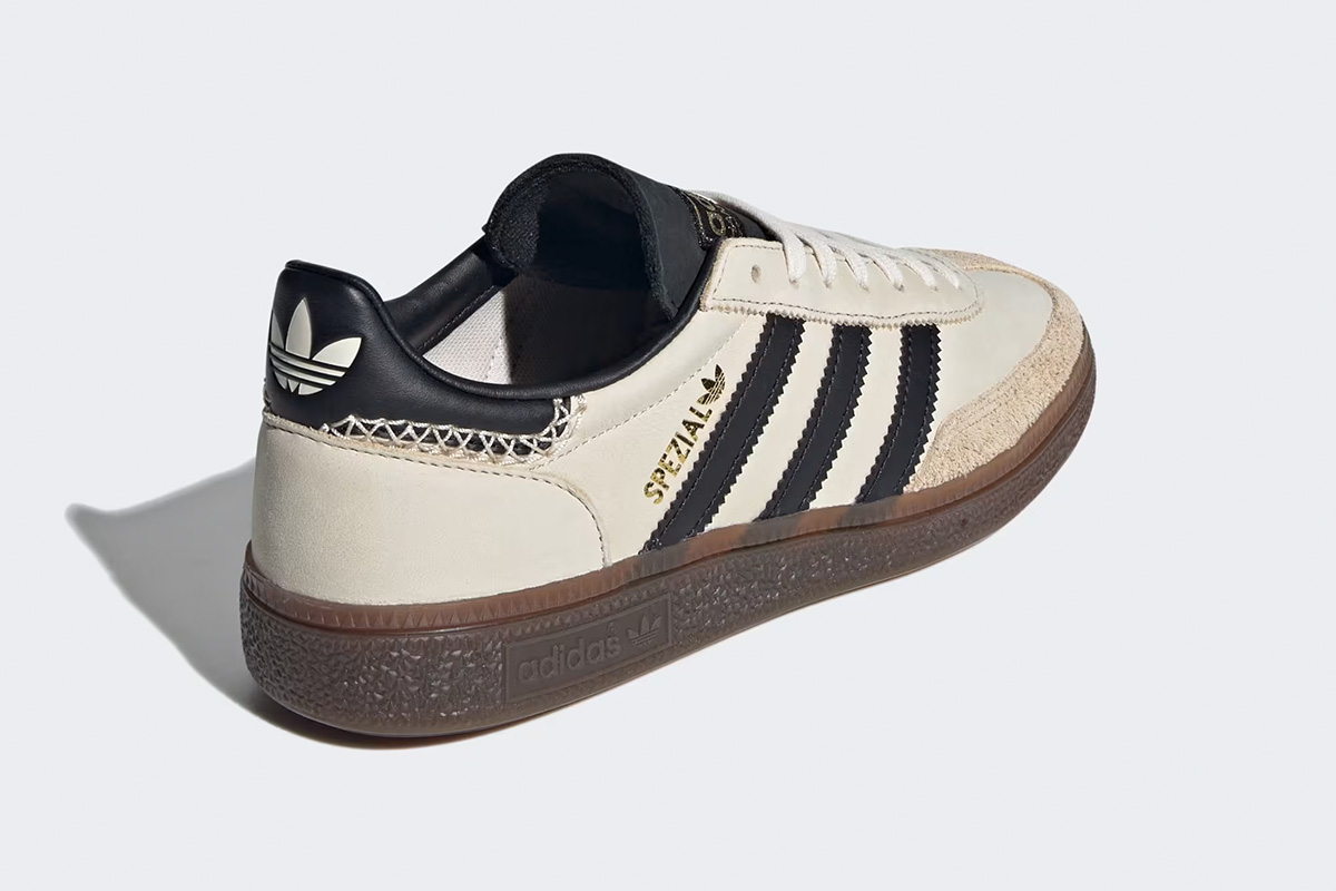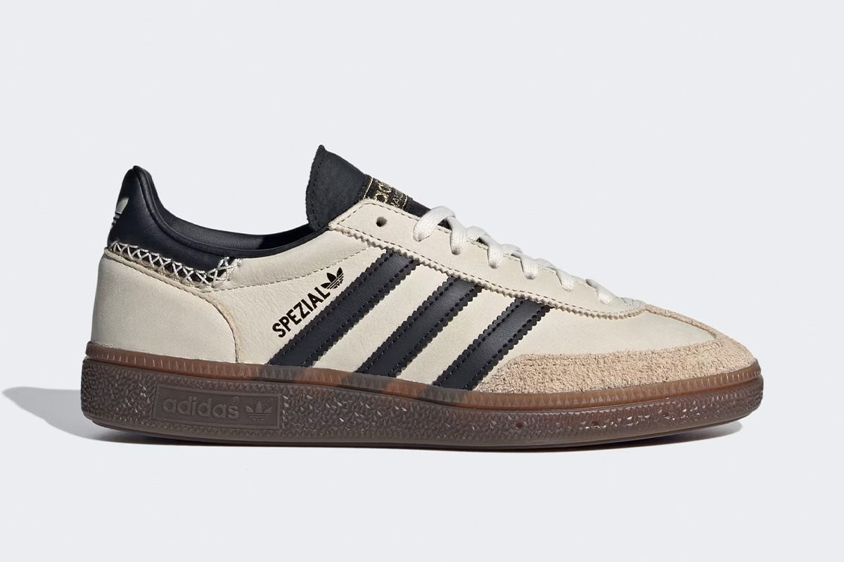 The adidas Handball Spezial Wonder White Black (Women’s) applies a two-tone colorway of Wonder White and black to the classic Handball Spezial silhouette. Originally designed as an indoor court shoe, the Handball Spezial is now a lifestyle sneaker with retro roots. The upper is crafted from premium leather in Wonder White with black details. For example, the 3-Stripes logo on the side panel, the heel tab, the collar, and the tongue come in black. Unlike other models, the “Wonder White Black” iteration features a T-shaped toebox made of soft suede in Magic Beige. Branding details include ‘SPEZIAL’ in metallic gold lettering on the side panel and a Wonder White trefoil on the heel tab.