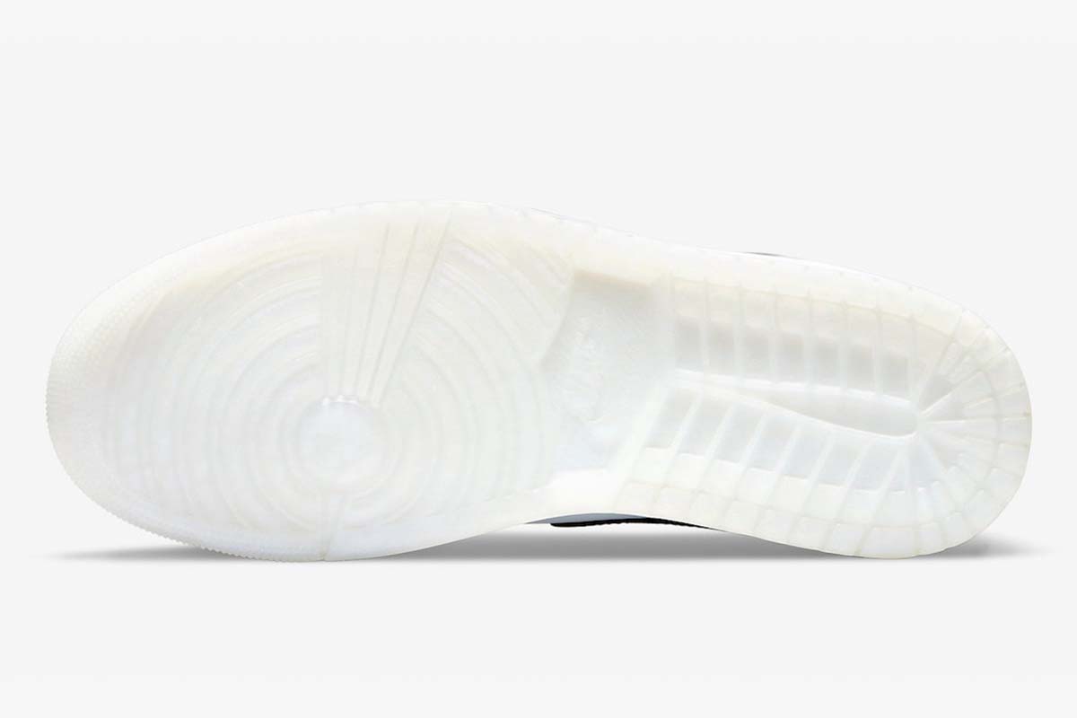 A white rubber midsole features an encapsulated Air-sole unit in the heel and a milky white translucent rubber outsole underfoot.