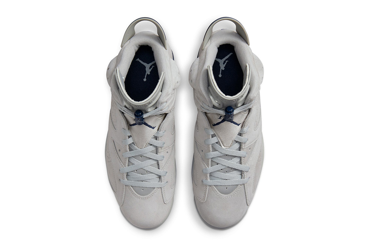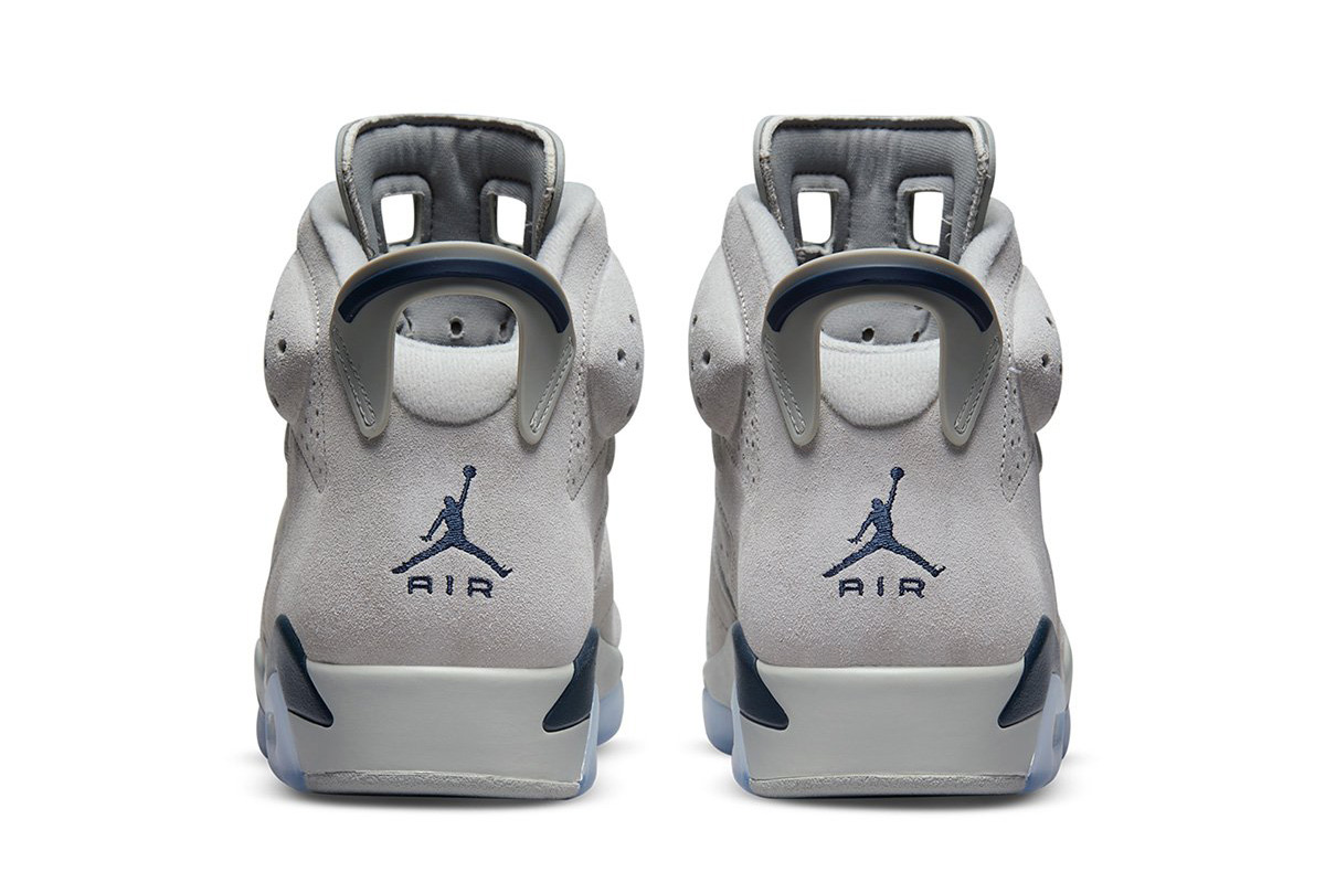 Contrasting navy accents make their way to the heel tab, lace locks, and Jumpman branding hits embroidered on the tongue and back heel.
