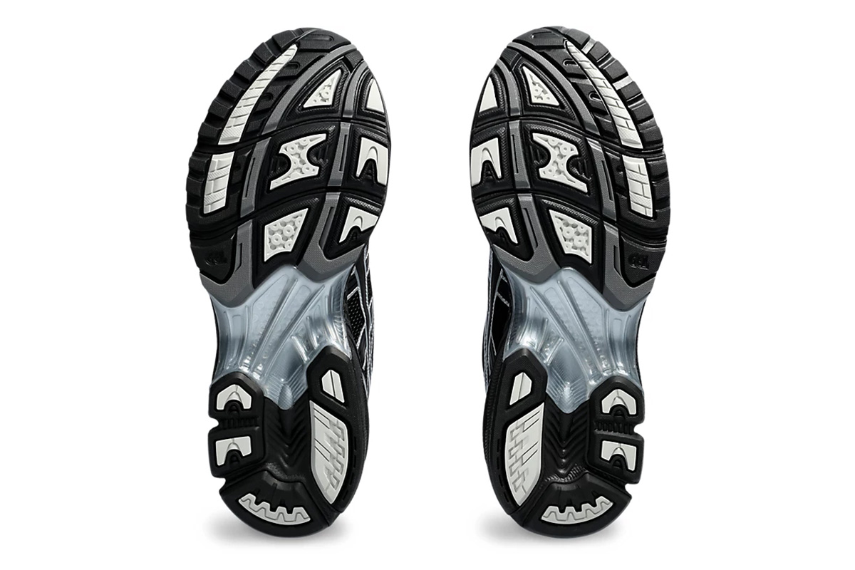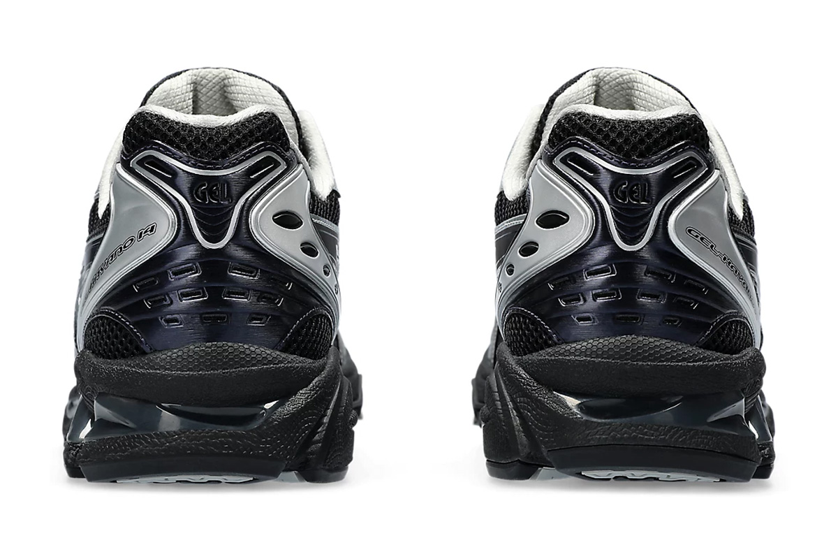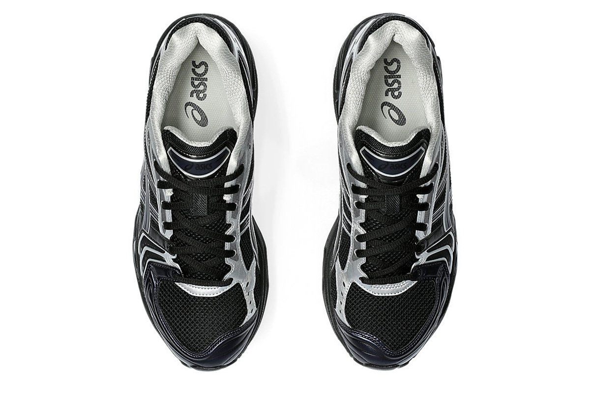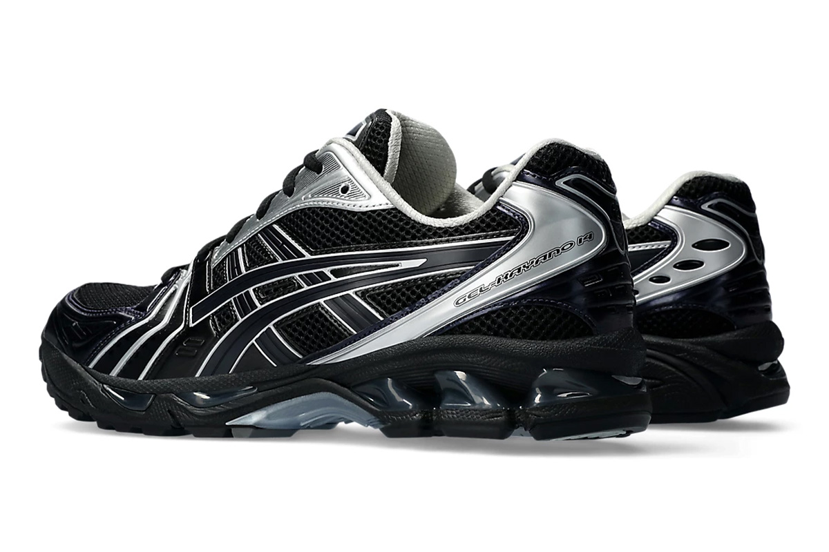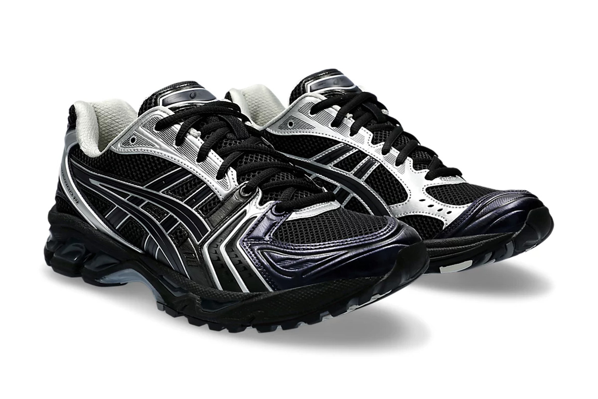 Japan’s atmos joins forces with Korean fashion label Undermycar on the ASICS Gel Kayano 14 ‘Black Pure Silver.’ The lifestyle running shoe sports a black mesh upper with tonal side stripes outlined in metallic silver trim. Matching silver detailing appears on the eyestay and heel overlay, marked with Gel Kayano 14 branding on the lateral side. A solid black finish is applied to the EVA midsole, featuring visible Gel cushioning for impact protection and a comfortable ride.
