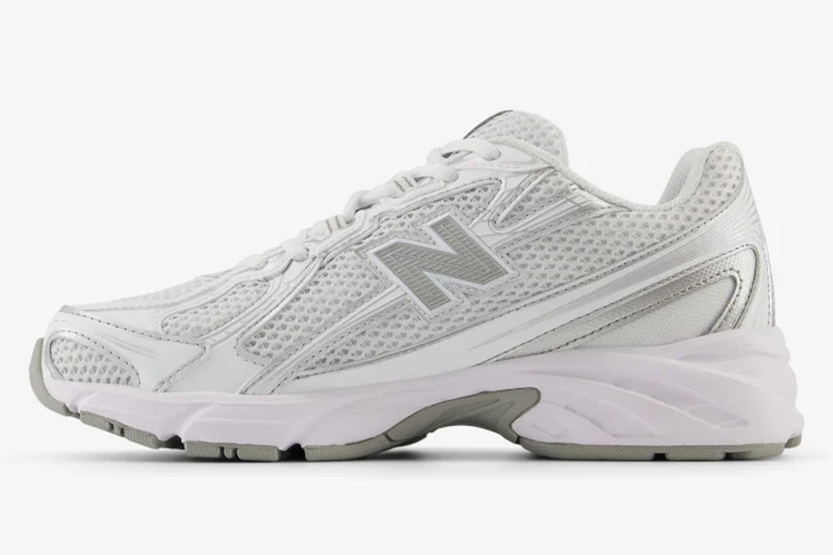 The New Balance 740v2 ‘White Silver Reflection’ features a mixed-material build, highlighted by white open-cell mesh with synthetic overlays in shiny metallic silver. An additional pop of silver distinguishes the molded TPU ‘N’ logo that adorns the quarter panel. Completing the archival design is a full-length ABZORB midsole, which dampens impact through a combination of cushioning and compression resistance.