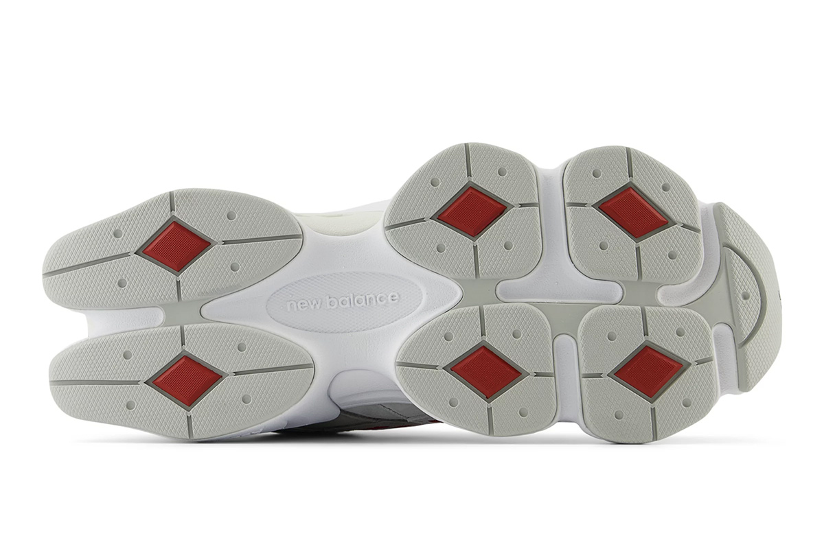 The 9060 is a new expression of the refined style and innovation-led design that have made the 99X series home to some of the most iconic models in New Balance history. The 9060 reinterprets familiar elements sourced from classic 99X models with a warped sensibility inspired by the proudly futuristic, visible tech aesthetic of the y2k era. Sway bars, taken from the 990, are expanded and utilized throughout the entire upper for a sense of visible motion, while wavy lines and scaled up proportions on a sculpted pod midsole place an exaggerated emphasis on the familiar cushioning platforms of ABZORB, SBS and ENCAP.
