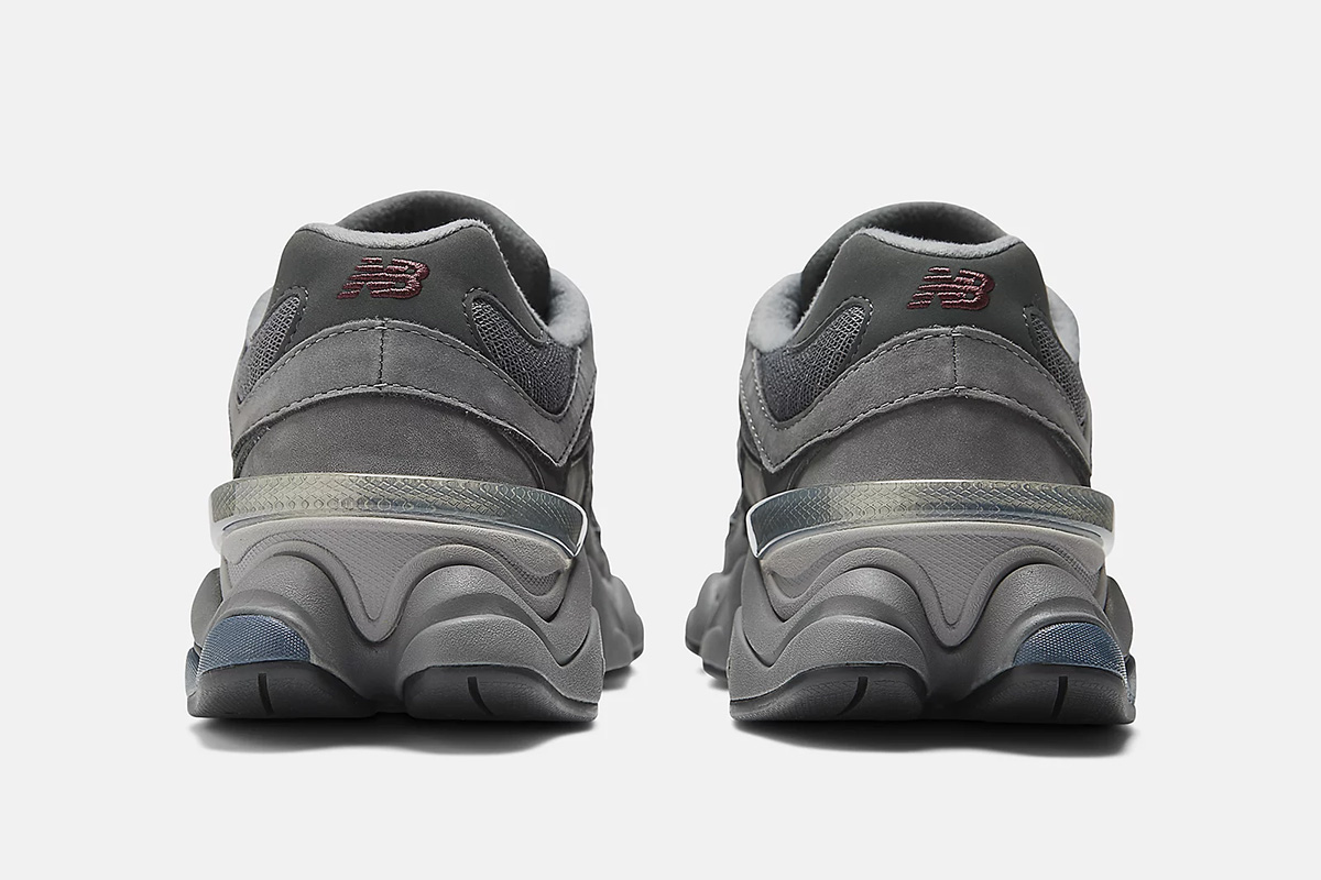The New Balance 9060 Castlerock combines elements of other New Balance silhouettes to create an eye-catching high-octane running shoe. The Castlerock New Balance 9060 has an upper with a base of white and gray mesh overlaid with wavy strips of black and gray leather, an aesthetic borrowed from the 990 to give a sense of visible motion. The side-panel N is embroidered in small stripes while a solid N is embroidered at the base of the black laces. NB branding is also embroidered on the heel above the translucent CR device. The black leather tongue with gleaming red branding hearkens back to the 991. The feature that makes this running shoe stand apart is the exaggerated sculpted pod midsole made of ABZORB to absorb impact and provide cushioning. The ABZORB SBS in the heel offers comfort and stability. The black rubber outsole with red diamonds pays homage to the 860.