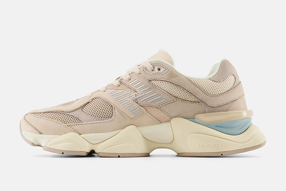 The 9060 is a new expression of the refined style and innovation-led design that have made the 99X series home to some of the most iconic models in New Balance history. The 9060 reinterprets familiar elements sourced from classic 99X models with a warped sensibility inspired by the proudly futuristic, visible tech aesthetic of the y2k era. Sway bars, taken from the 990, are expanded and utilized throughout the entire upper for a sense of visible motion, while wavy lines and scaled up proportions on a sculpted pod midsole place an exaggerated emphasis on the familiar cushioning platforms of ABZORB, SBS and ENCAP.
