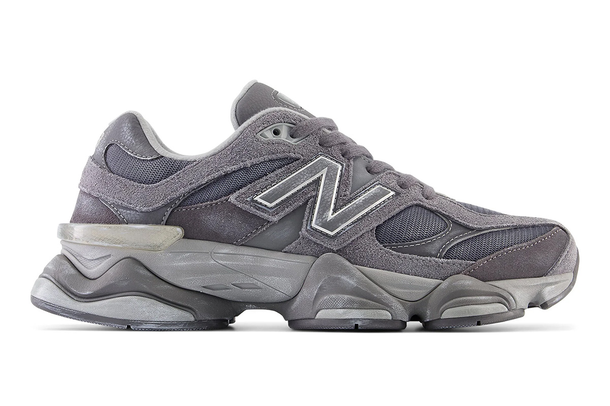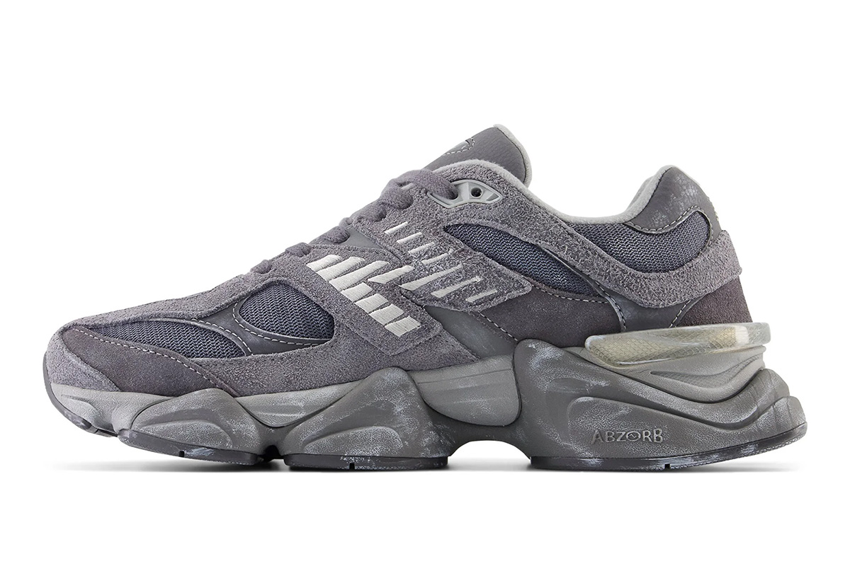 The New Balance 9060 ‘Magnet’ showcases varying shades of grey on the upper, crafted from breathable mesh with durable overlays in hairy suede and synthetic leather. A matte silver ‘N’ logo graces the quarter panel, while a jeweled NB 9060 badge decorates the tongue. The sneaker is mounted on a double-stacked ABZORB midsole, fitted with SBS cushioning in the heel and supported by a diamond-pattern rubber outsole underfoot.