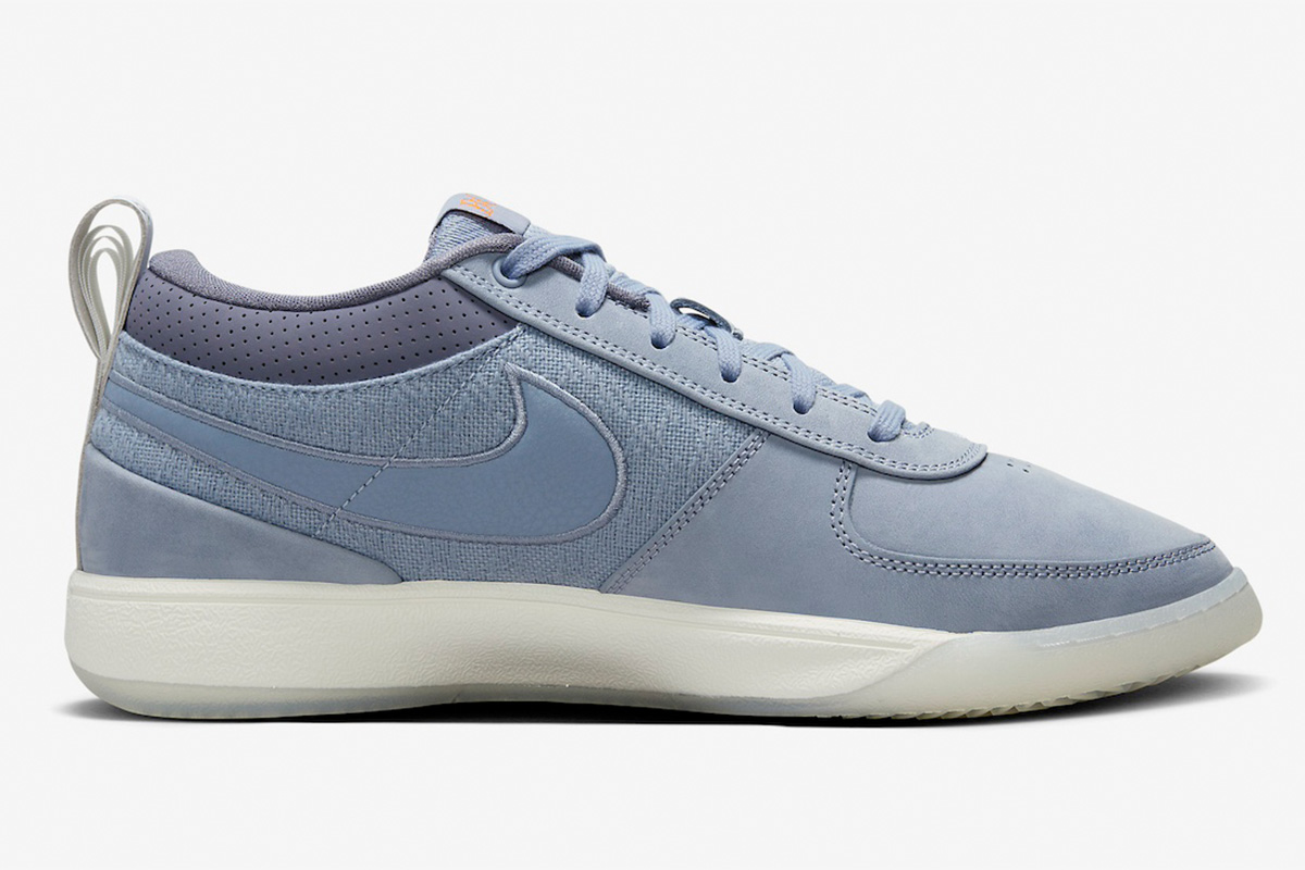 The Nike Book 1 ‘Mirage V2’ presents a subtle Ashen Slate hue on the upper, featuring patterned textile side panels and nubuck construction along the forefoot.