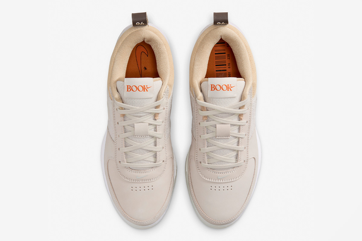 Devin Booker’s first signature release, the Nike Book 1 ‘Light Orewood Brown,’ makes use of an ivory-colored leather upper with tonal textile side panels.