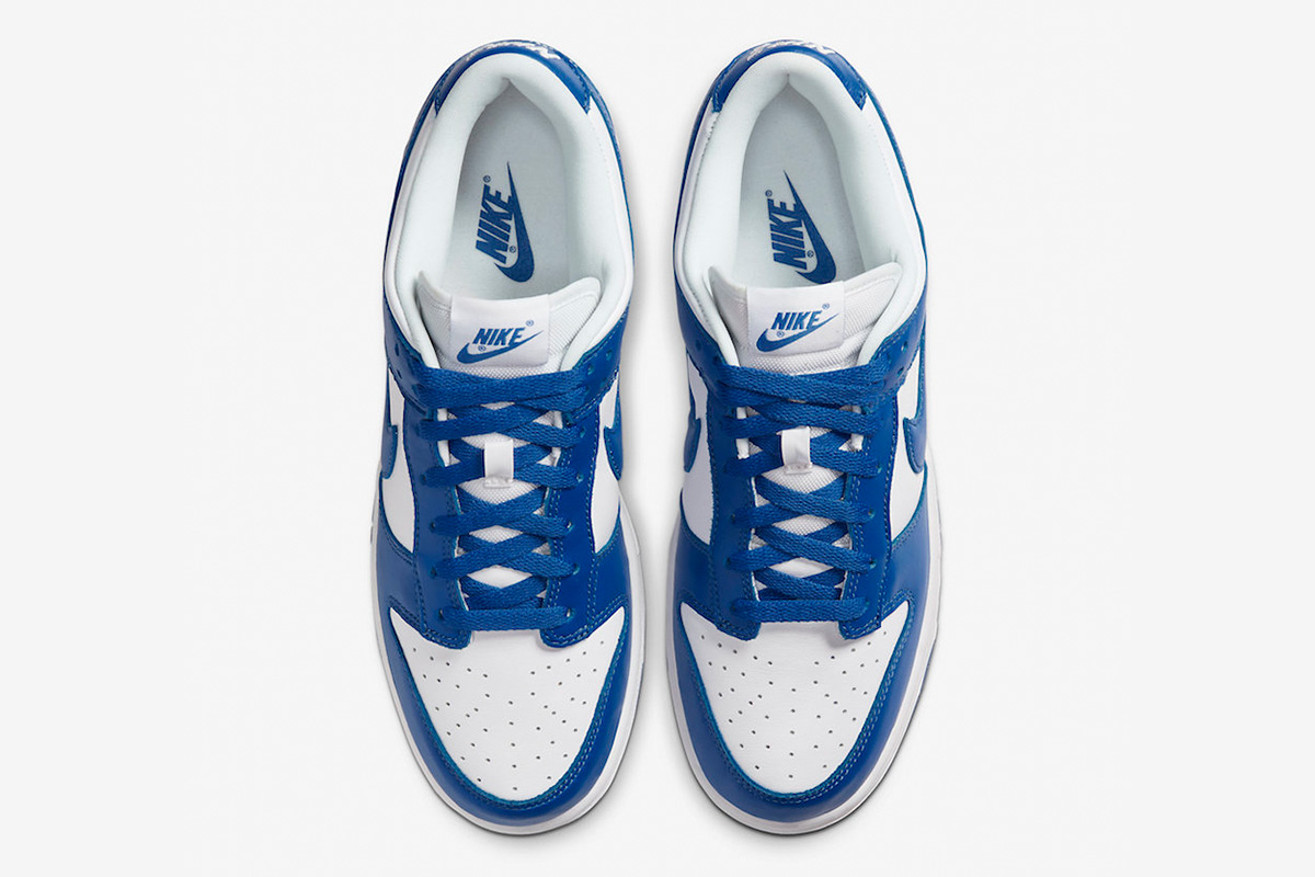 Celebrating the silhouette’s 35th anniversary, the Dunk Low Retro SP ‘Kentucky’ borrows a familiar color scheme from Nike’s legendary ‘Be True to Your School’ series from 1985.