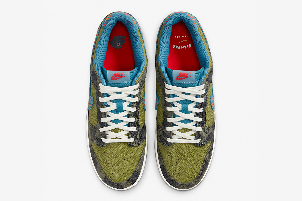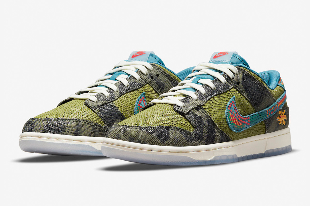 Celebrating Día de Muertos, the Nike Dunk Low ‘SiEMPRE Familia’ makes over the retro silhouette with reptilian flair.