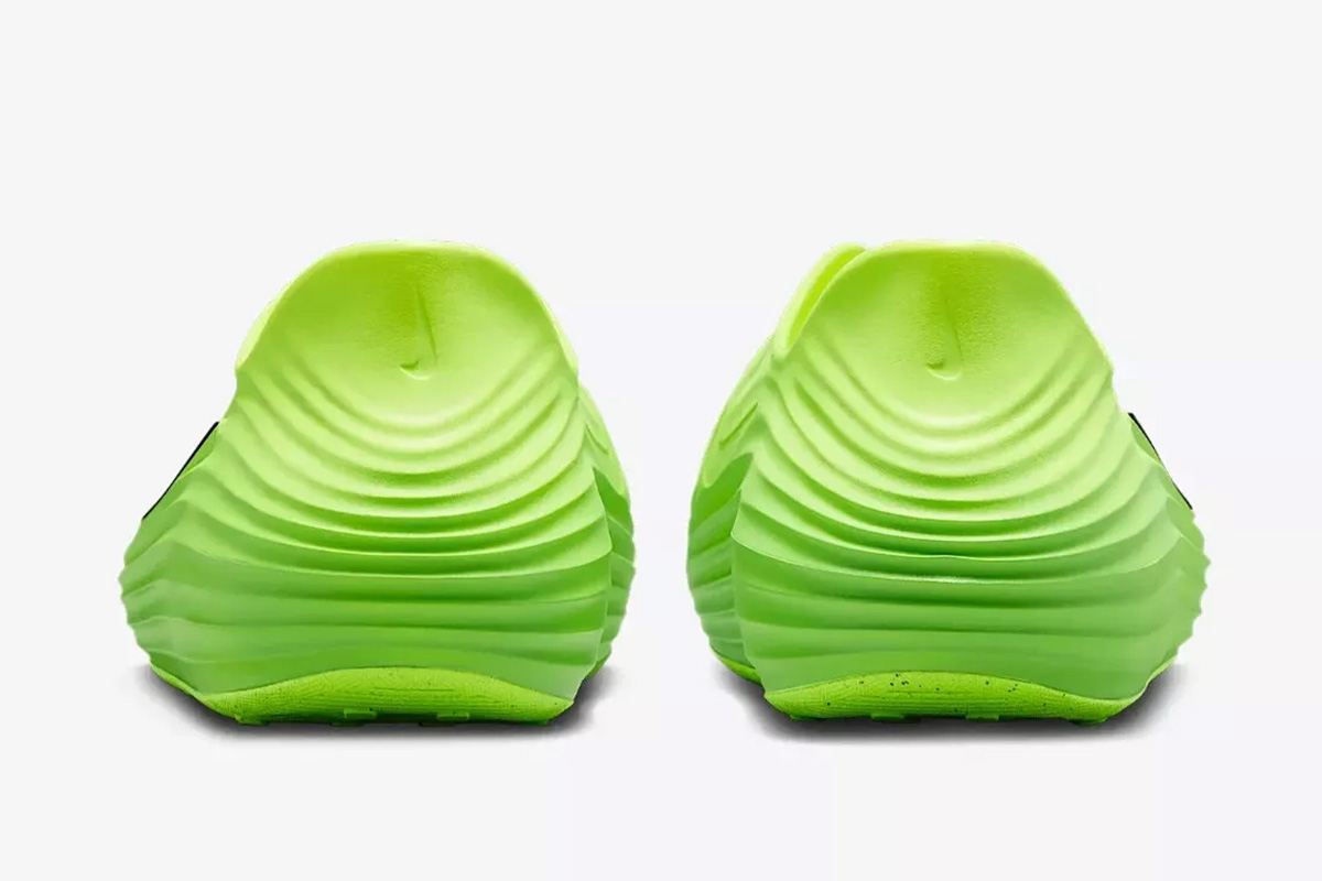 The Nike ReactX Rejuven8 ‘Green Strike’ showcases an eye-catching finish on the lightweight slip-on. Built with ReactX foam, the one-piece upper prevents overheating through the application of ventilation holes throughout the vamp. A molded black Swoosh on the lateral side disrupts the monochrome design. Underfoot, the rubber outsole features a radial traction pattern.