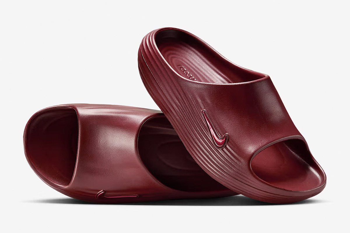 The Nike ReactX Rejuven8 Slide ‘Team Red’ brings a rich maroon hue to a recovery sandal built with a single piece of ReactX foam. A molded crimson Swoosh adorns the lateral side of the wide strap upper. Marked with ‘ReactX’ branding, the contoured footbed is designed to cradle the foot, while the high-stack midsole offers lightweight cushioning with each step. A durable rubber outsole provides multi-surface traction.
