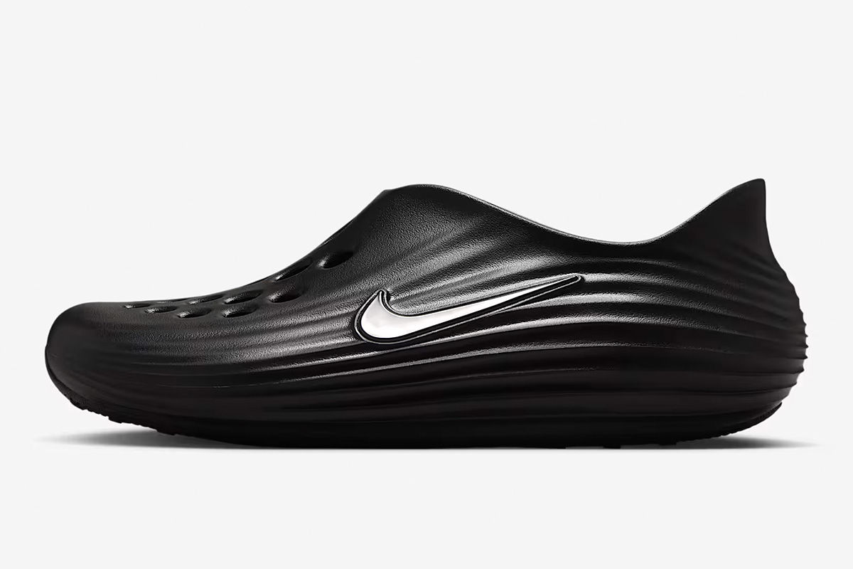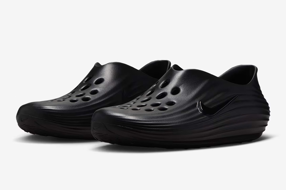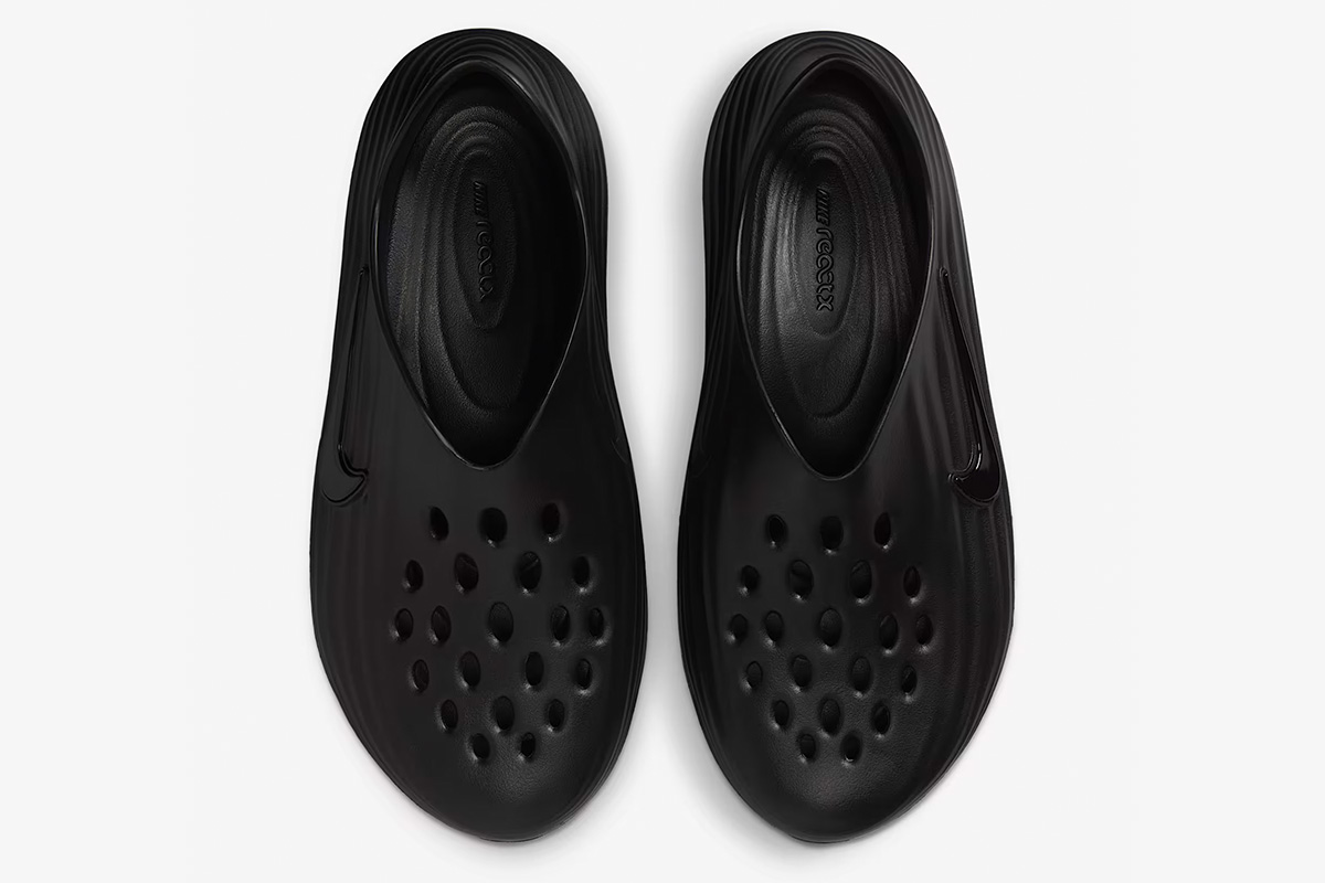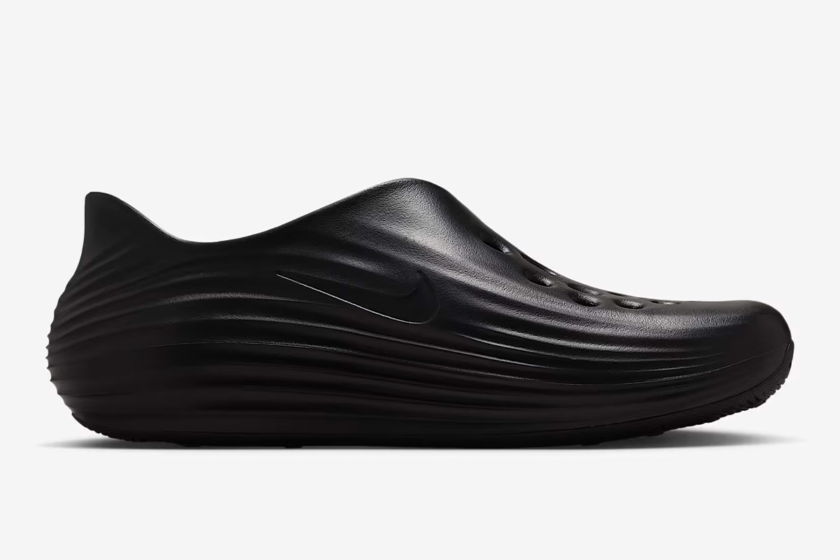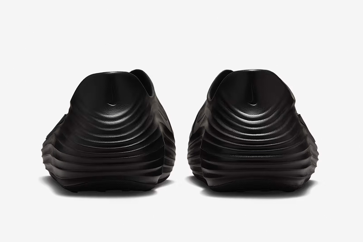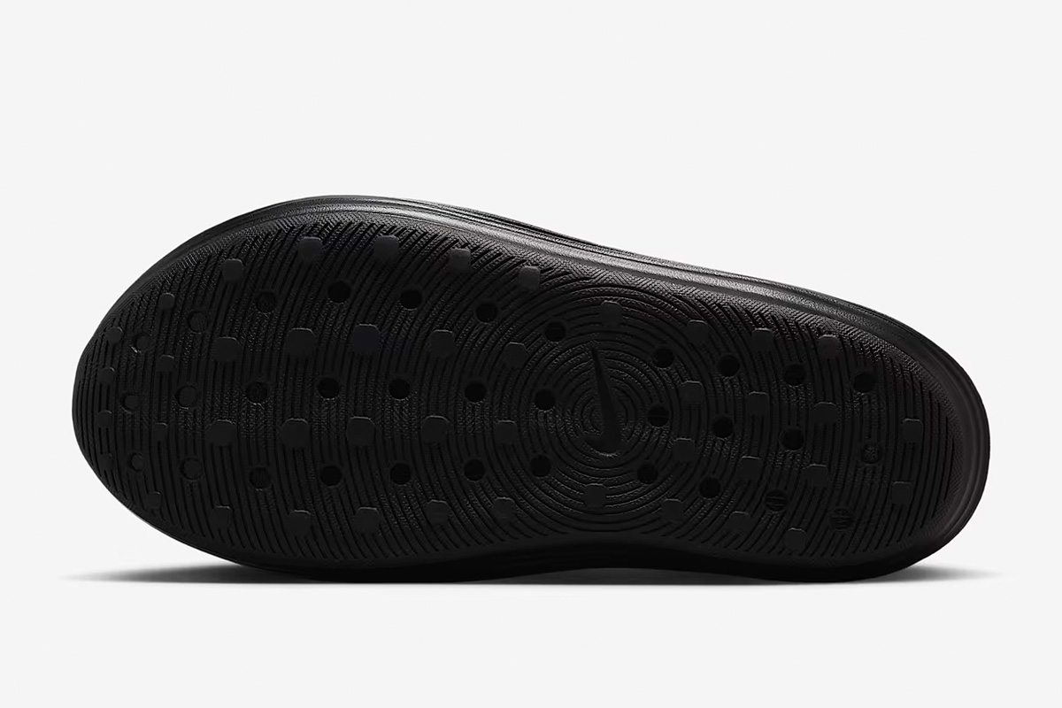 The Nike ReactX Rejuven8 ‘Triple Black’ brings a sleek monochrome finish to a slip-on silhouette made with responsive ReactX foam. A sculpted heel provides a secure fit, while a roomy toe box accommodates a variety of foot widths. Circular vents throughout the vamp offer improved airflow. Underfoot, the rubber outsole utilizes a radial traction pattern for multi-directional grip.