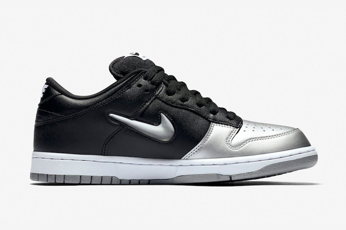 Jewel Swooshes are embedded into both sides, while a stitched ‘Supreme’ star logo is found on the lateral heel.