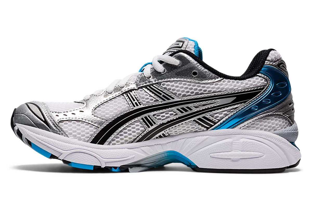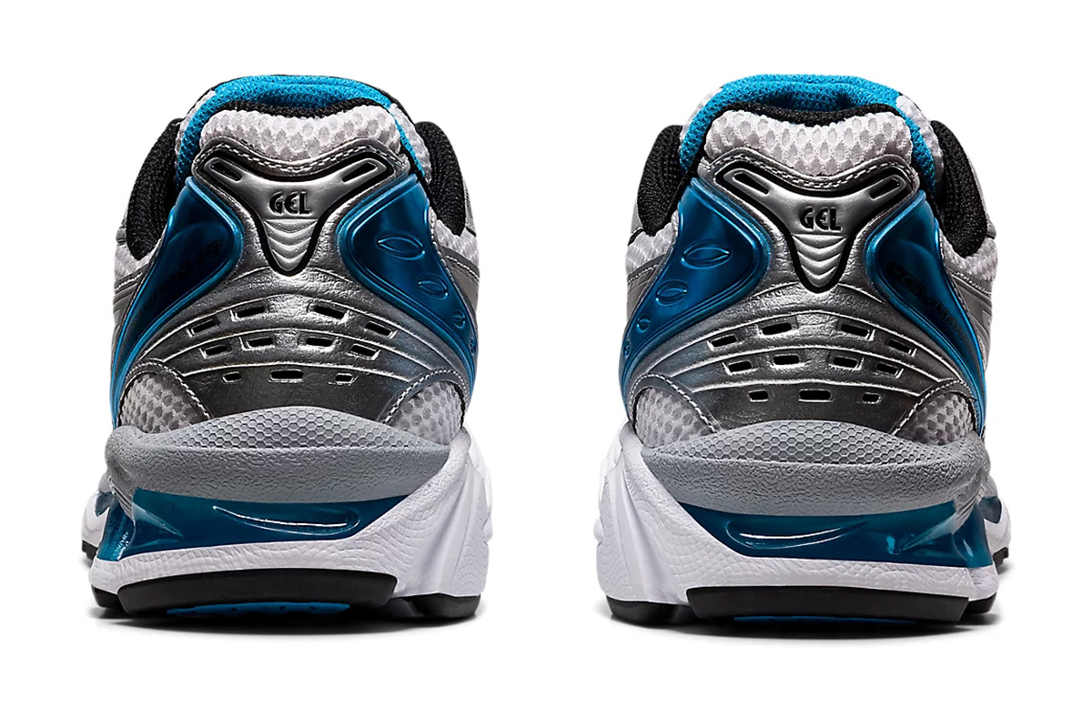 The ASICS women’s Gel Kayano 14 ‘Aizuri Blue’ brings back the lightweight performance running shoe originally released in 2008. The aesthetic of the lightweight sneaker reflects designer Hidenori Yamashita’s pursuit of ‘flash,’ featuring an airy mesh build with metallic silver overlays and contrasting blue accents. Tooling is true to the original, which combines dual-density EVA with visible Gel cushioning technology for enhanced impact protection.