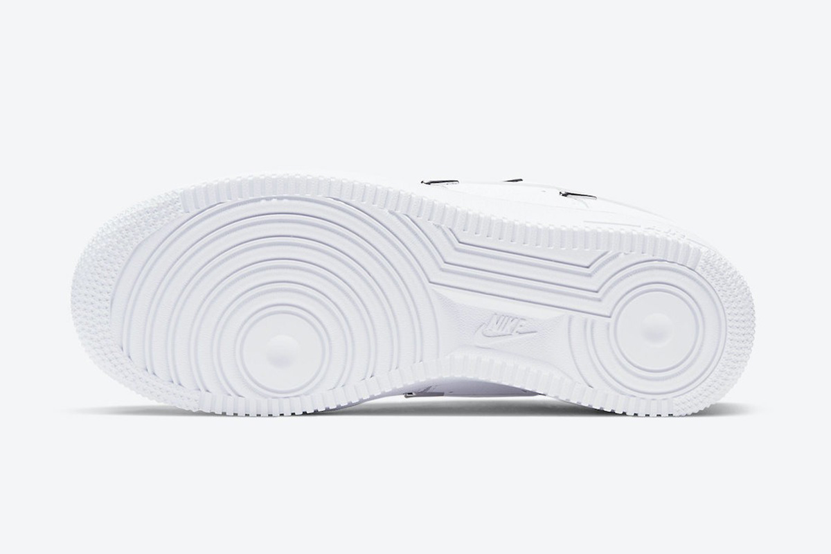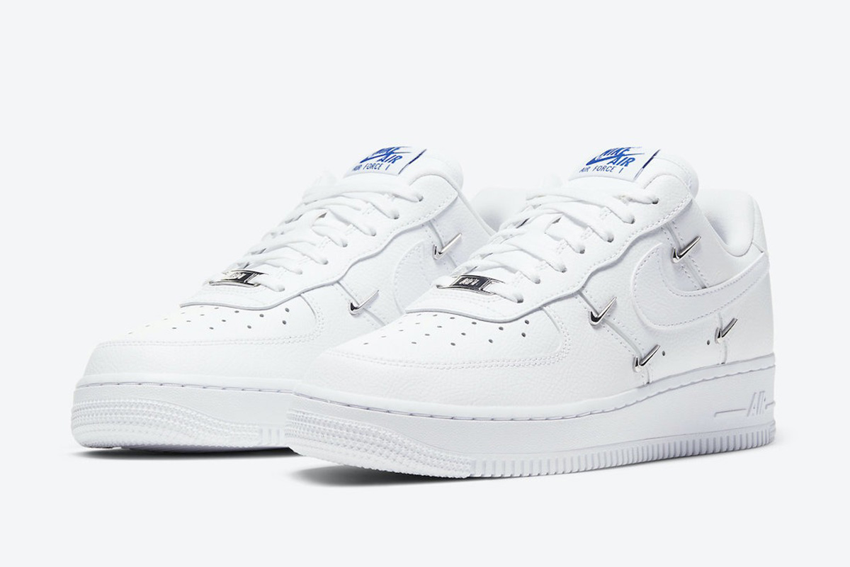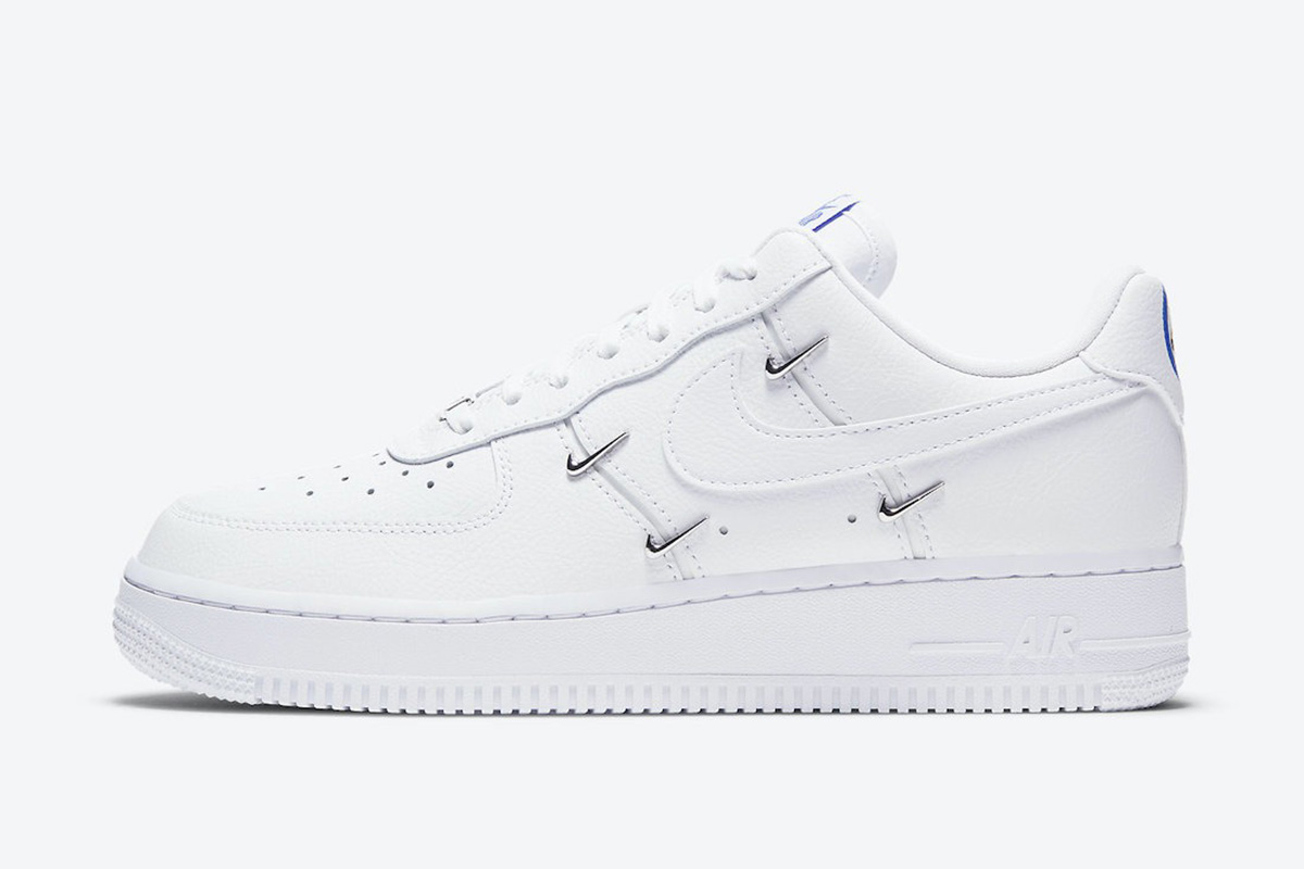 Launching as part of the brand’s ‘Sisterhood’ collection, the Nike women’s Air Force 1 ’07 LX ‘White Metallic Silver’ showcases a pristine white leather upper, accented with a quartet of 3D silver mini-Swooshes on each quarter panel.