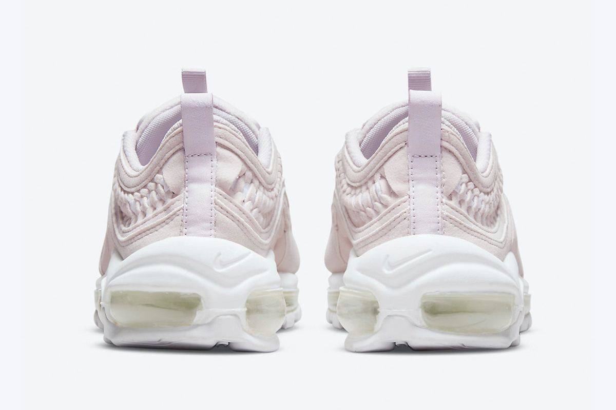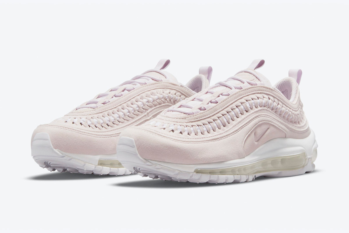 To go along with the “Tan Gum” pair, Nike has also released a Pastel Pink colorway of their latest Air Max 97 LX “Woven” edition.